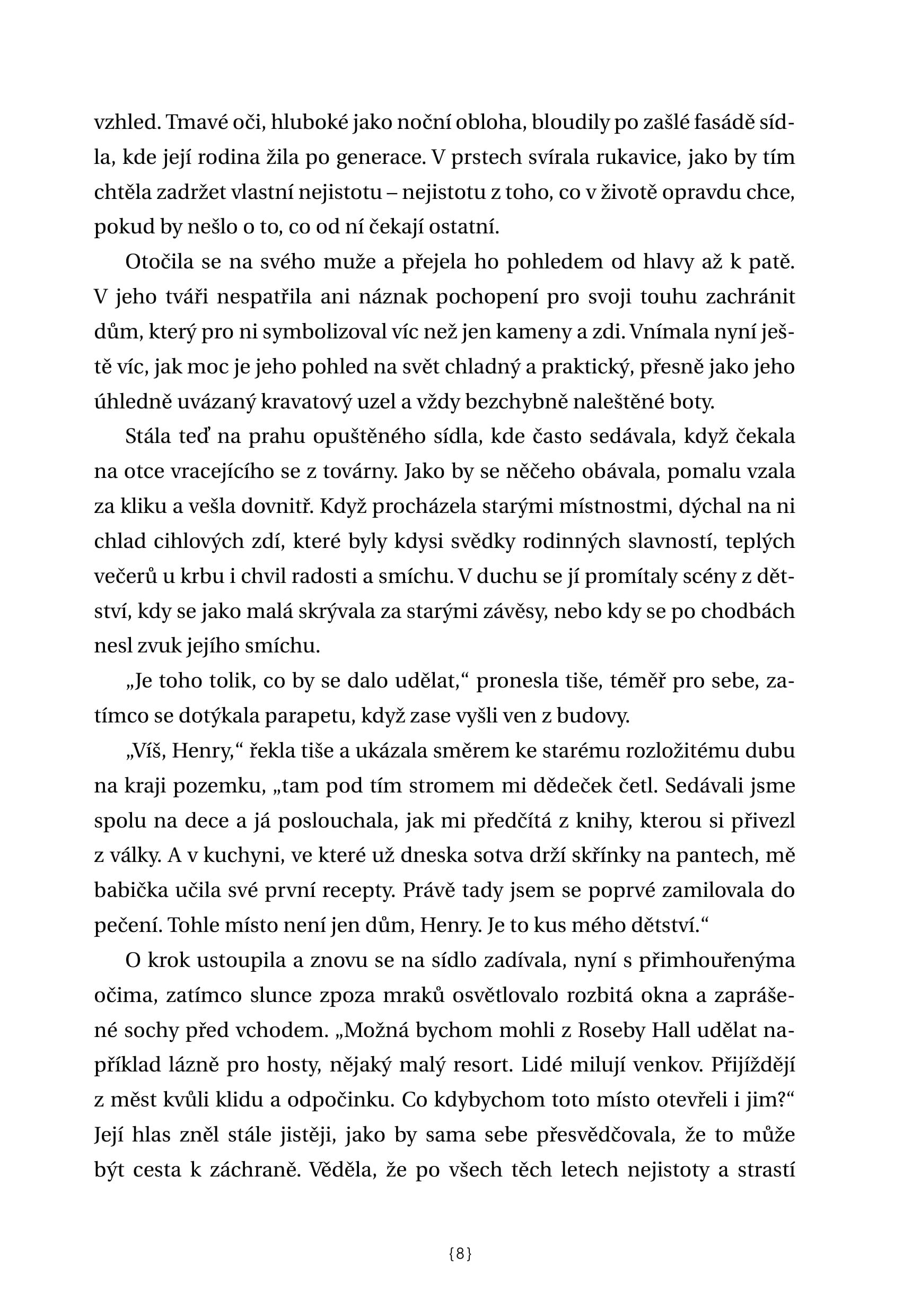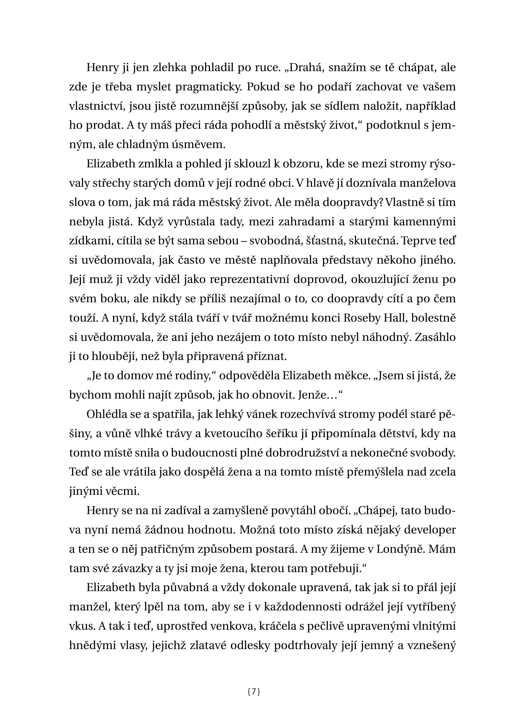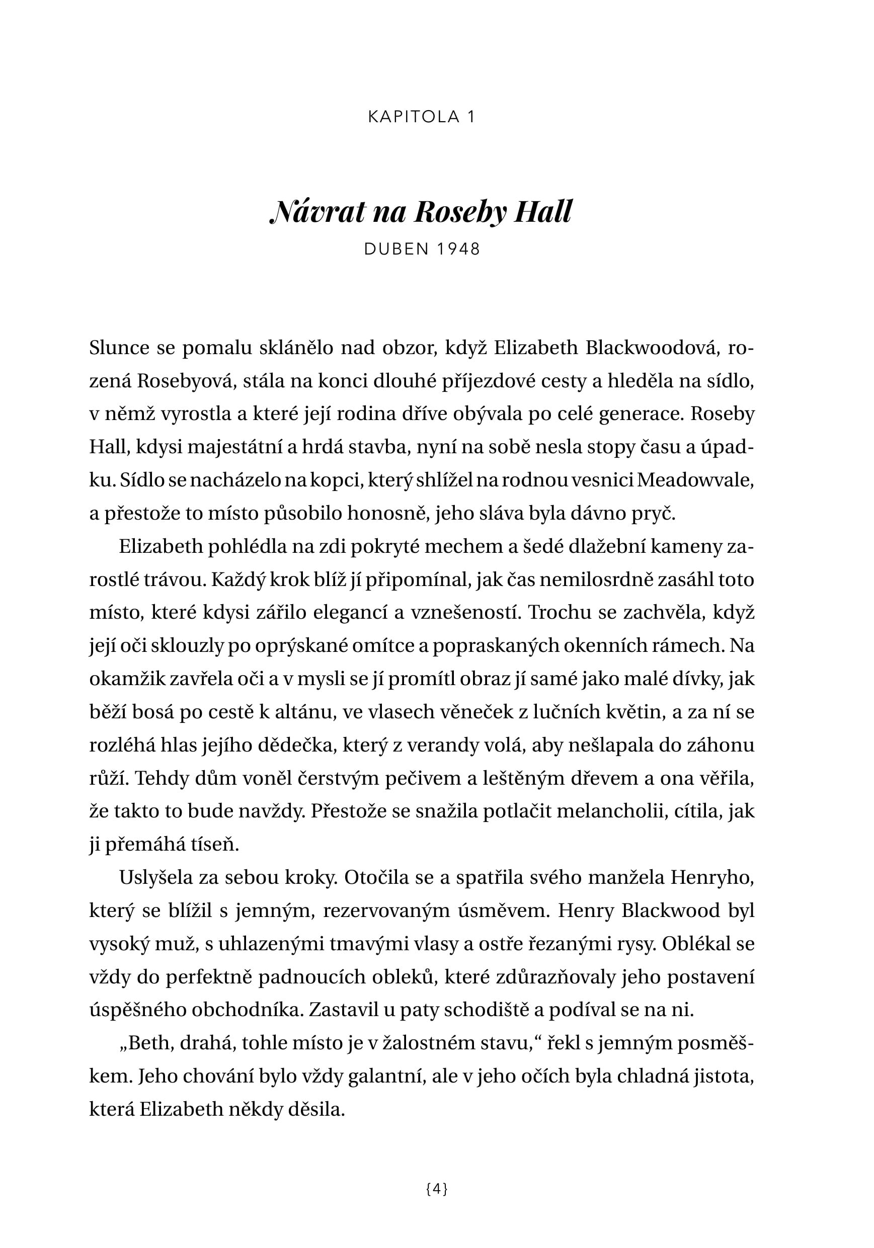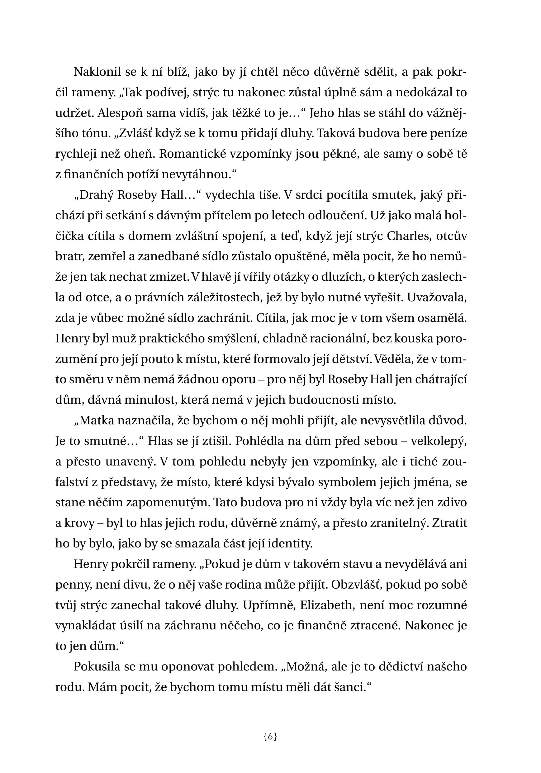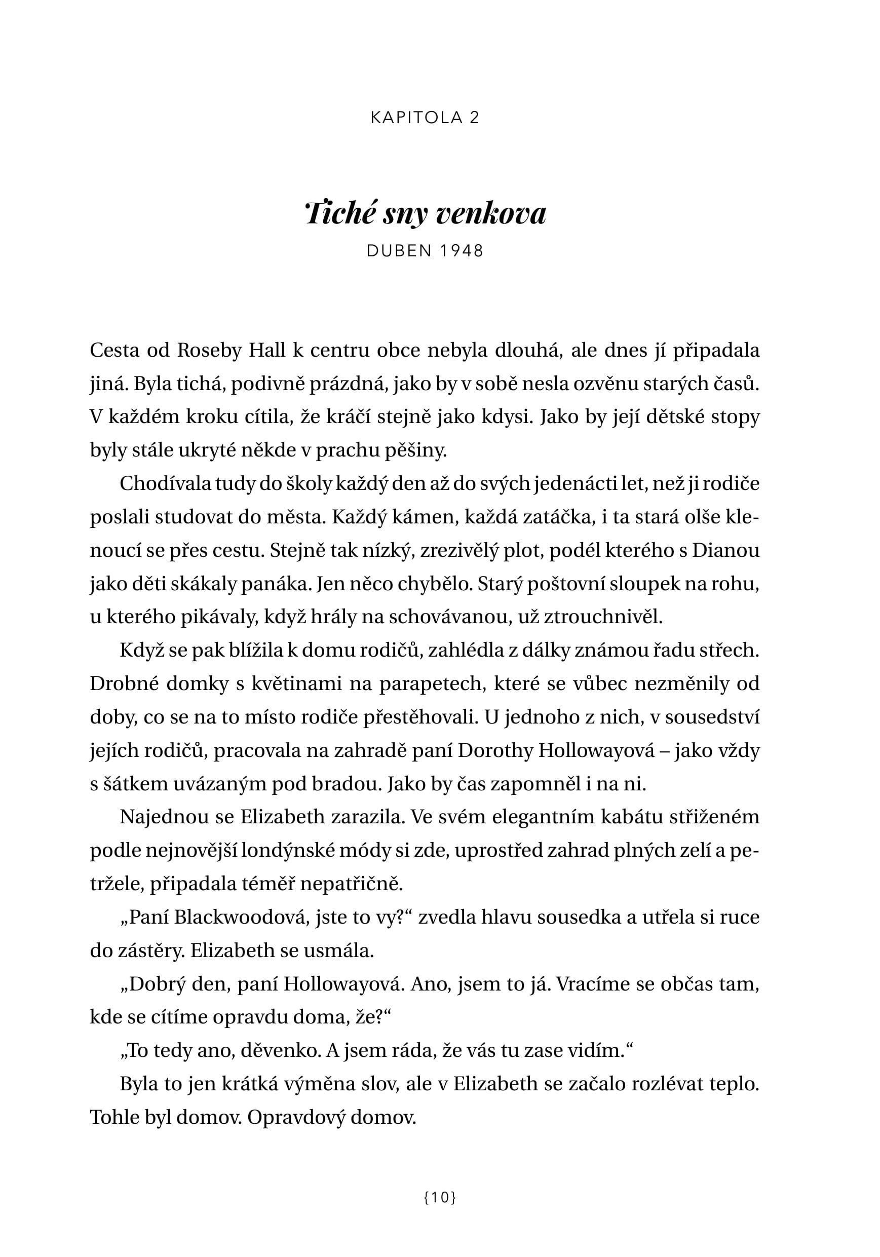 Roseby Hall je zpustlý, zapomenutý, ale pro Elizabeth je to stále dům jejích snů – místo, kde voněly babiččiny koláče, kde poprvé držela otěže a kde zanechala kousek svého srdce.